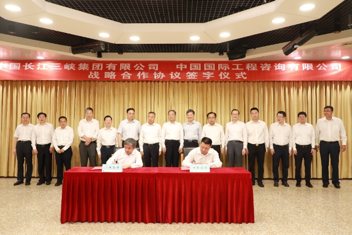6月24日,中咨公司党委书记、董事长、总经理苟护生接待中国长江三峡集团有限公司党组书记、董事长雷鸣山一行,双方就助力国家实现碳达峰、碳中和目标,深化在新能源开发、生态环保、工程建设、国际市场开发等领域务实合作进行深入座谈交流,并举行战略合作协议签约仪式。